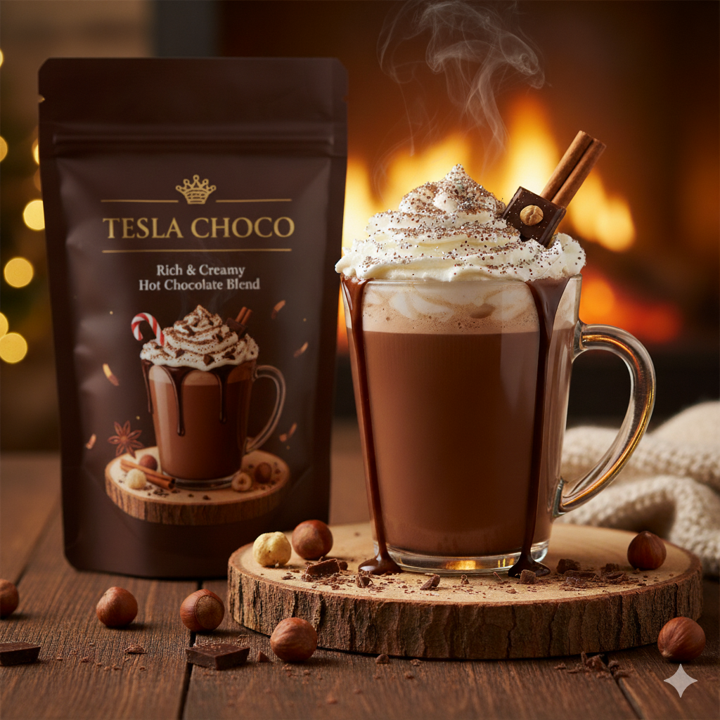 تسلا هوت شوكليت: مذاق غني ودافئ من الشوكولاتة الفاخرة، يمنحك لحظة راحة وسعادة في كل رشفة.
